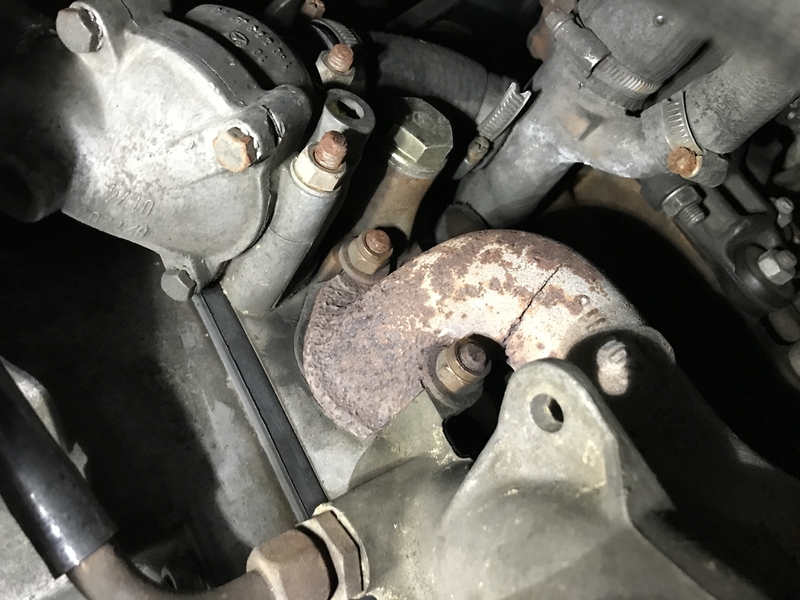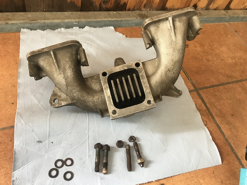 Jetzt muss der Abgaskrümmer nächste Woche geschweißt und evtl. geplant werden. Leider muss dazu der Ansaugkrümmer vom Abgaskrümmer getrennt werden.