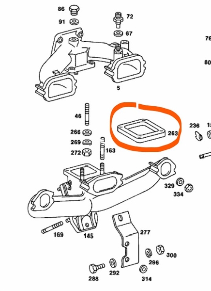 Ich hätte jetzt die Ansaugbrücke und den Abgaskrümmer ausgebaut und schweißen lassen. Eine Firma im Nachbarort kann Guss schweißen. Als Neuteil hab ich den Abgaskrümmer nicht gefunden (Mercedesnummer 1151423401).